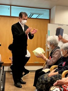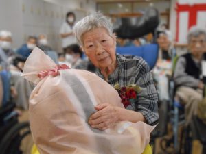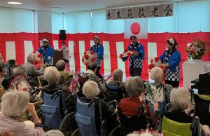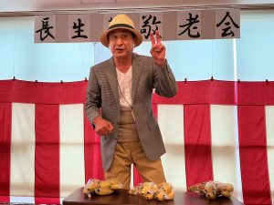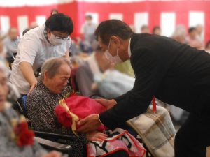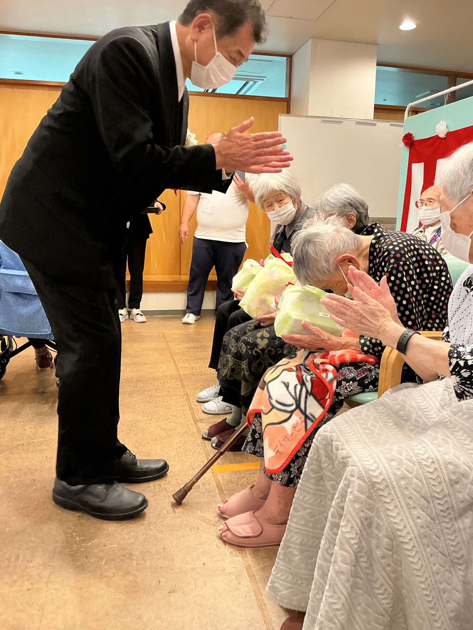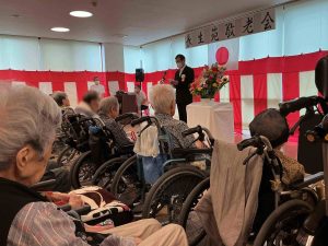 第25回 長生苑敬老会 2025年9月29日 アルバム 新着情報 by admin. 令和7年9月15日「敬老の日」に長生苑敬老会を開催いたしました。 さて、今年の敬老会ですが、「食事会」「式典」「アトラクション」の3部構成。感染症対策にも配慮しながら、「式典」と「アトラクション」では特養・ケアハウスのご利用者が一堂に会し、にぎやかなひと時を過ごしました。 また、特養のご家族様につきましても、一家族1名に限らせていただく形とはなりましたが、コロナ禍から6年ぶりにご臨席が叶い、職員一同嬉しく思っております。